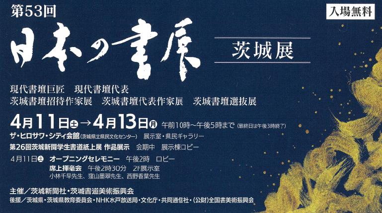 4月11日(土)から日本の書展 茨城展がザ・ヒロサワ・シティ会館(茨城県立県民文化センター)にて開催します。